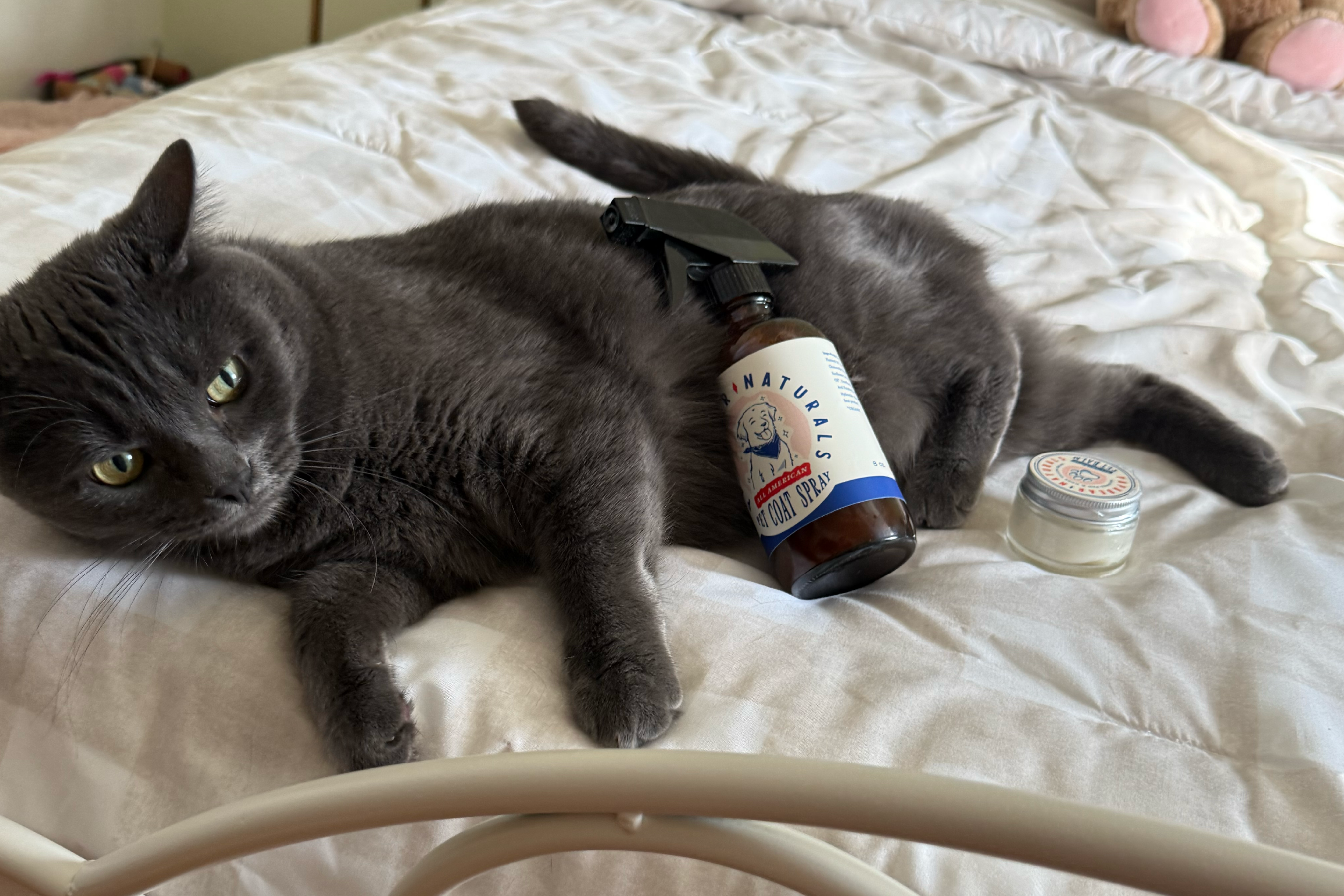 This pet spray made Bonnie’s coat shiny and soft, even after a lake jump. It works wonders,her coat looks fresh, like a bath!