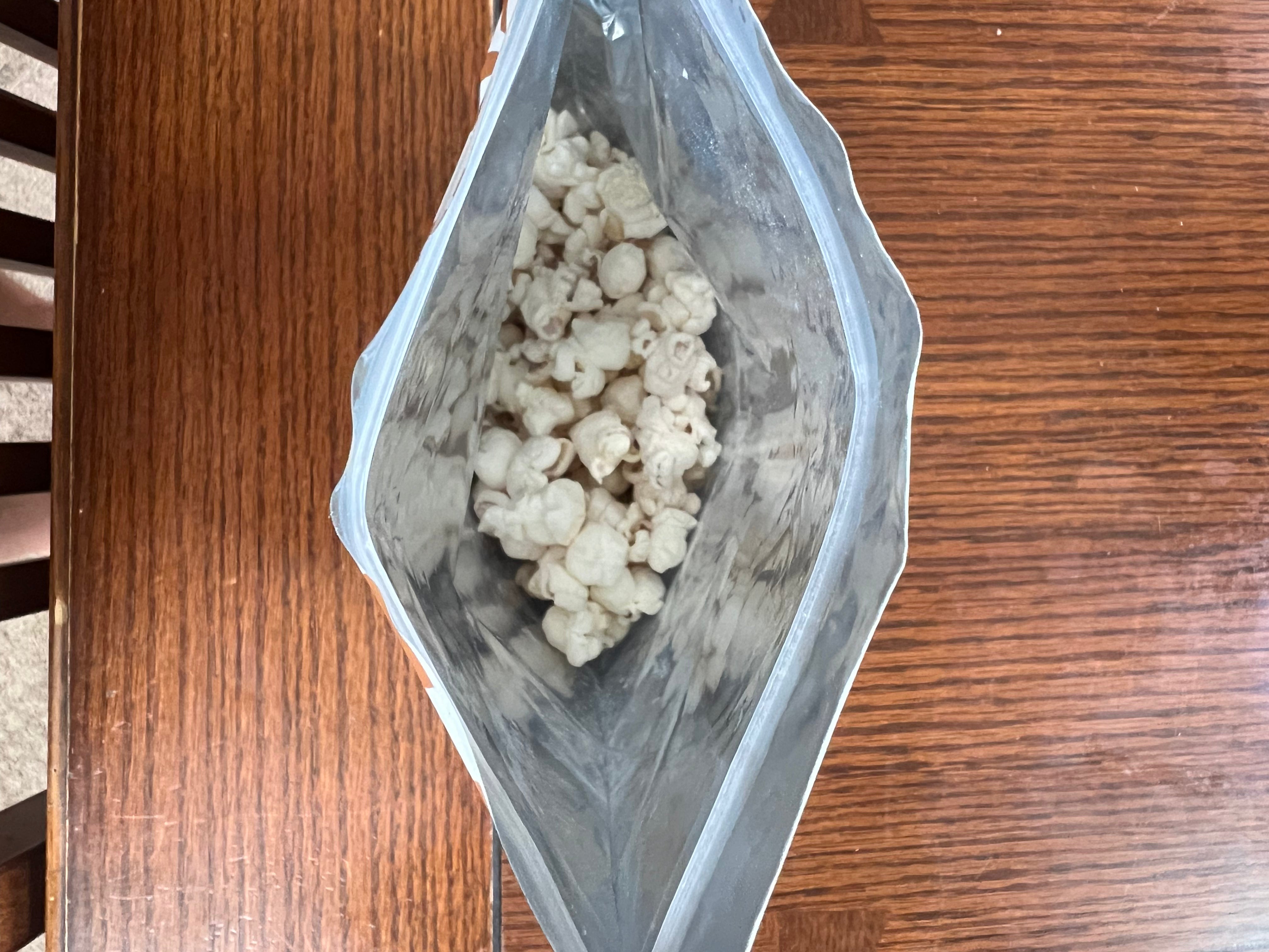 I am constantly looking for tasty, healthy, shelf stable, road trip snacks that are resealable and for my 1 hour commute to work. This popcorn is a perfect solution. The aroma upon opening the bag immediately made me want to pop them into my mouth. The taste had all the elements that I enjoy, slightly salty and cheesy. The clearly listed nutrition label outlined that this is a good snack for me and my macros. The serving size says one but for me it’s definitely multiple servings.