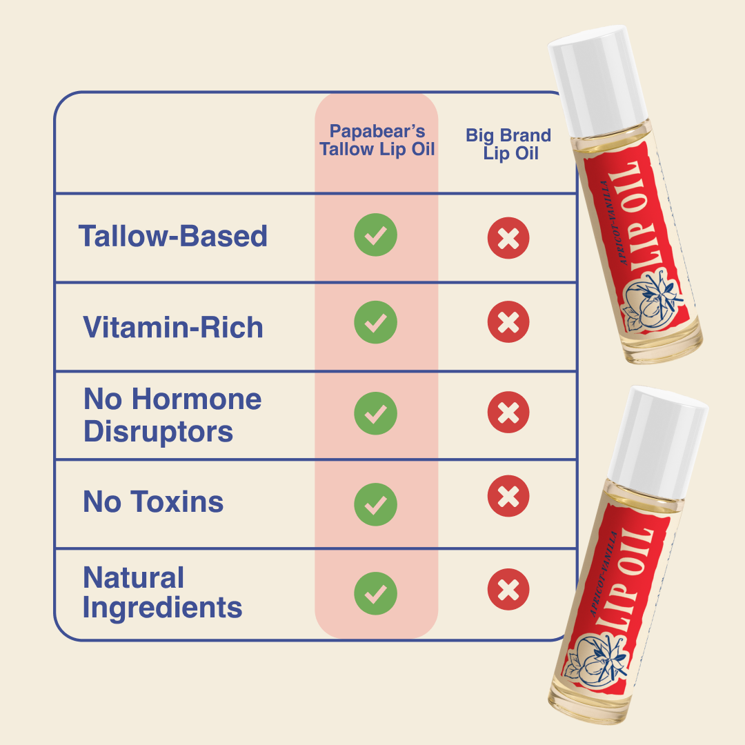 Give your lips a natural shine that actually nourishes. Papabear Lip Oil is crafted in small batches in the USA with organic grass-fed tallow and a blend of jojoba, apricot, and castor oils. This silky formula sinks in fast, softening and protecting without stickiness. A touch of vitamin E and vanilla extract adds a smooth, subtle finish that keeps your lips hydrated and radiant all day.
