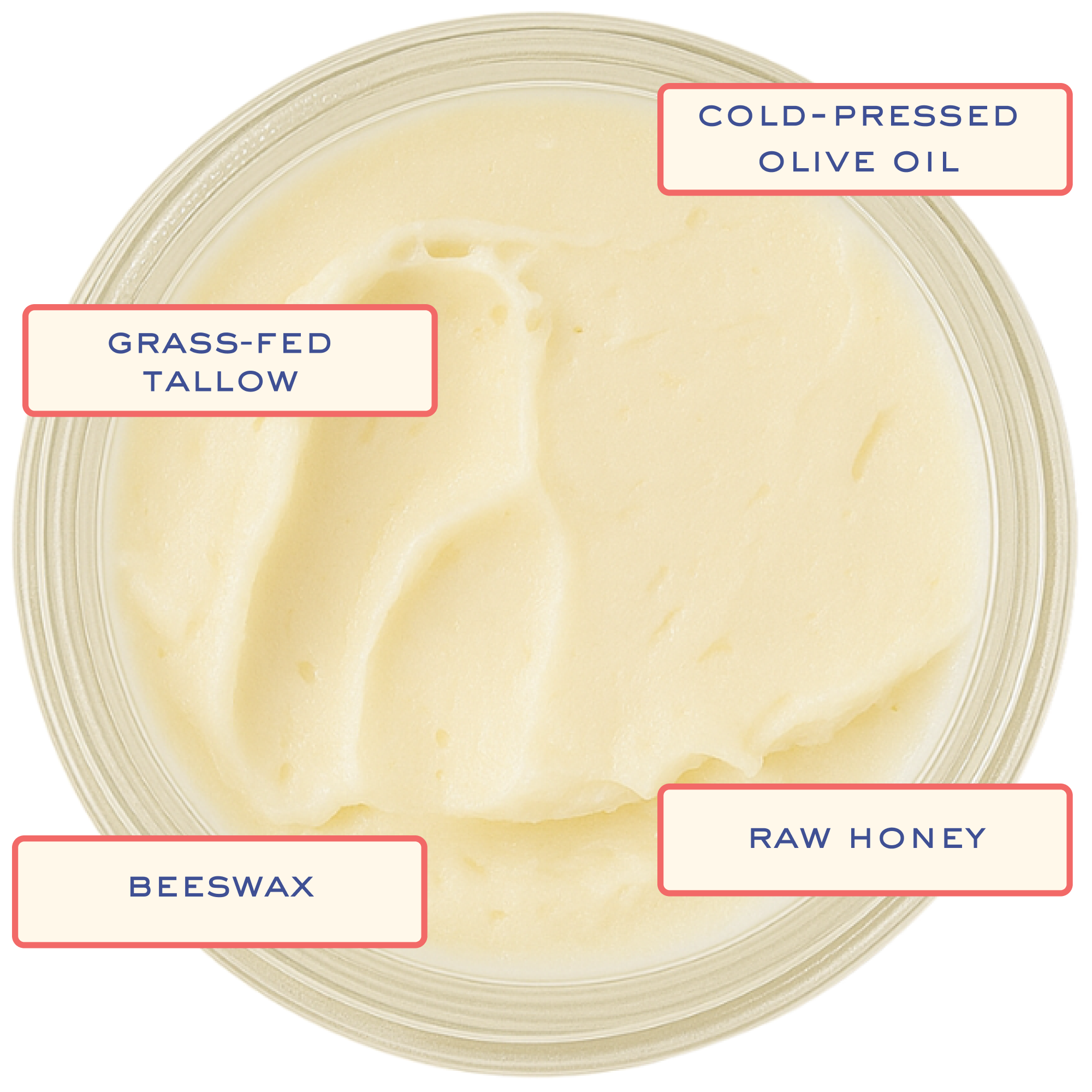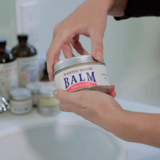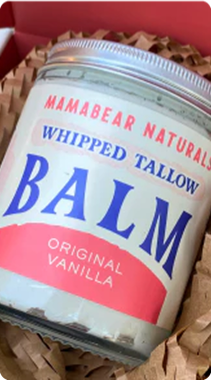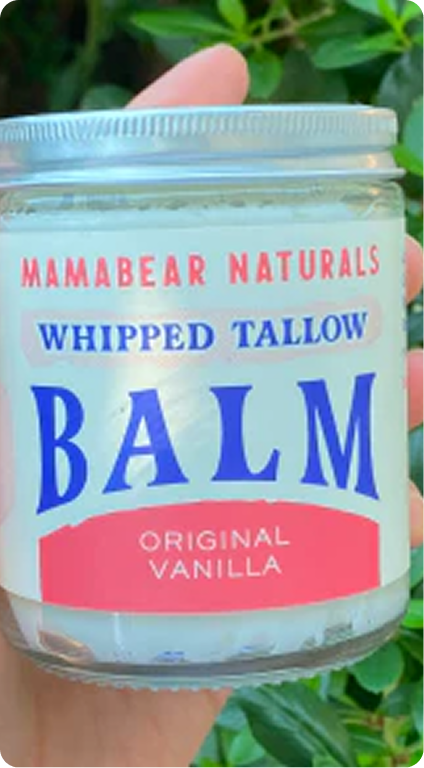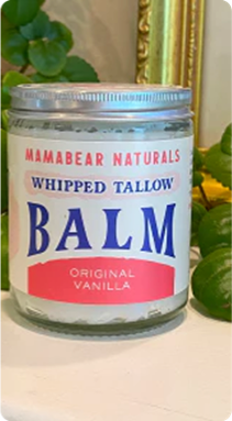 Our Luxury Whipped Balm is a Mamabear favorite—crafted with organic grass-fed tallow, olive oil, local honey and beeswax. Whipped for a smooth, spreadable texture, it deeply hydrates, calms inflammation and protects skin. Effective for acne, eczema, rosacea, psoriasis and sunburns—pure, natural care with no chemicals or fillers.